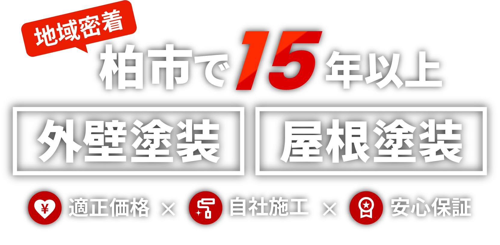 〜次の時代へ〜 対応エリアは柏市を中心にしております。市外での施工を希望の際はお問い合わせください。 対応エリアは柏市を中心にしております。市外での施工を希望の際はお問い合わせください。 LINEで外壁診断 見積依頼 お知らせ NEWS お客様の声 お客様の声 2025-11-06 柏市で施工したお客様の声 \ よくあるお悩みにお答えします!/ お役立ち情報を見る \ 頼んでよかった!/ お客様の声を見る 外壁塗装をご検討の方へ \ こんなお悩みありませんか? / どのタイミングで工事をすれば良いかわからない…。 どのタイミングで工事をすれば良いの…。 どの業者に頼めば良いかわからない…。 業者選びで失敗したくない…。 工事が始まってから追加料金がかかるか不安…。 追加料金がかかるか不安…。 あなたの大切なお家が長くお住まいになれるよう外壁・屋根の無料診断を行っています。無料診断では、塗装のタイミングや施工業者の注意点などを具体的にアドバイスさせていただききます。無理な営業は行いませんのでご安心ください。 LINEで外壁診断 見積依頼 電話でお問い合わせ TEL.090-6340-1772 【受付可能時間】年中無休 9:00〜20:00 \ だから選ばれています! / ファイトワークの強み VALUE 地域密着15年の安心実績 創業から15年以上、柏市で数多くの外壁・屋根塗装を手がけてきました。地元のお客様からのご紹介やリピートのご依頼も多く、地域に根差した安心の実績があります。 自社施工で適正価格 すべての工事を自社の職人が直接施工。下請けに任せないから中間マージンが発生せず、適正価格で高品質な仕上がりをご提供します。 丁寧な下地処理&高品質仕上げ 見えない部分こそ手を抜かないのが私たちのこだわり。下地をしっかり整えることで、塗料本来の性能を発揮し、10年先も安心できる住まいを守ります。 保証制度とアフターフォロー完備 施工内容に応じて最長3年の保証をお付けし、定期点検やアフターフォローも実施。工事後も「頼んでよかった」と思っていただける体制を整えています。 \ 地域に根差した安心の実績 / 施工事例 WORKS 2025-12-04 【外壁・屋根塗装】経年劣化を抑える高耐久塗料にリニューアル|柏市 築10年 / 工期2週間 / 費用100 […] 100万円以上シリコン塗料ブルー系外壁塗装 実績一覧を見る 期間限定のお得なキャンペーン実施中! \ 公式LINEにご登録いただいた方限定 / 外壁塗装にまつわる不安をすべて解消できる、特典セットをご用意! このままでは危険!?「外壁劣化のサイン7選」 プロが見ているポイントはここ!「外壁・屋根の劣化チェックリスト」 プロが見る「外壁・屋根の劣化チェックリスト」 外壁塗装で失敗しない業者選び「5つのチェックポイント」 失敗しない業者選び「5つのチェックポイント」 塗料の種類別メリット・デメリット表 外壁塗装の適正価格早見表 “知らなきゃ損してしまう”内容ばかりです。ぜひこの機会にお受け取りください! “知らなきゃ損してしまう”内容ばかりです。ぜひこの機会にお受け取りください! 公式LINEに登録する \ 自社施工で適正価格 / 料金について PRICE 安心してご依頼いただくために 外壁塗装は「どれくらい費用がかかるのか分かりにくい…」というお声を多くいただきます。ファイトワークでは、お客様に安心してご依頼いただけるよう、塗料ごとの目安料金を明示し、事前にしっかりとご説明いたします。もちろん、追加費用が発生することはなく、ご納得いただいた上でのみ施工に進みます。 料金の目安 長寿命・メンテナンス周期が長い シリコン塗料 耐久年数の目安 約10〜12年 30坪住宅の価格の目安 80〜120万円 夏の暑さ対策・省エネ対策 フッ素塗料 耐久年数の目安 約15〜18年 30坪住宅の価格の目安 110〜150万円 最高クラスの耐久性・美観維持 無機塗料 耐久年数の目安 約18〜22年 30坪住宅の価格の目安 130〜180万円 料金はあくまで目安です。状況によって金額は変わりますので、お気軽にお問い合わせください。 料金について詳しく見る \ 定期点検・アフターフォローも!/ 保証について GUARANTEE 工事後も安心してお住まいになるために 工事後も安心してお住まいになるために 外壁塗装は工事が終わってからが本当のスタートです。ファイトワークでは、施工後も安心して暮らしていただけるよう、保証制度を整えています。万が一の不具合にも迅速に対応し、長く快適にお住まいいただけるよう4つの安心をサポートいたします。 工事保証〜施工内容に応じて最長3年保証〜 塗装後に万が一トラブルが発生しても大丈夫。施工内容ごとに最長3年の工事保証を設けており、責任を持って対応いたします。 保証書発行〜すべてのお客様に保証書を発行〜 「口約束だけでは不安…」そんな声に応えるため、全てのお客様に保証書を発行しています。施工内容や保証期間を明記した書面があるため、長く安心が続きます。 定期点検の実施〜1年後・3年後・5年後点検〜 「工事が終わった後のことが心配…」そんな声にお応えして、1年後・3年後・5年後の定